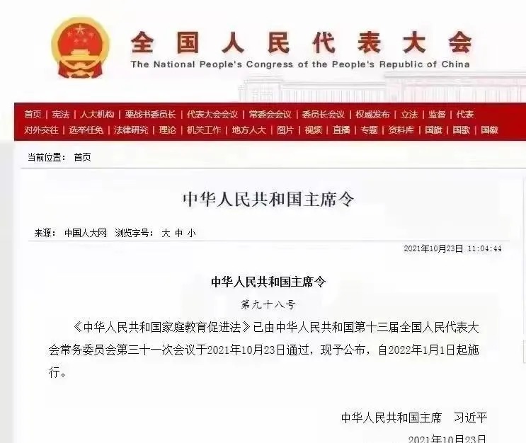 2021年,《中华人民共和国家庭教育促进法》通过。这是国家第一次为家庭教育专门立法。这意味着,教育孩子不再是随便管管就行,得有科学方法。