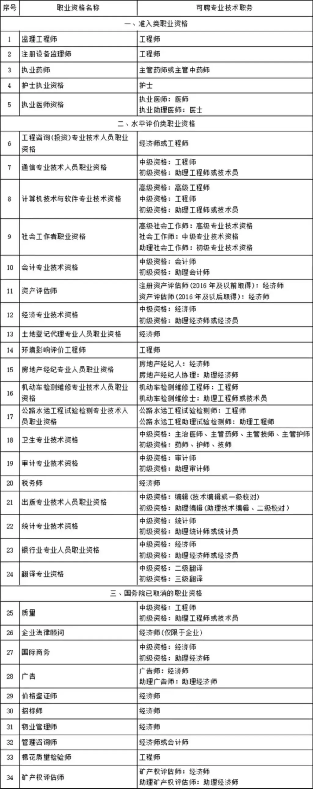 实行全国统一考试后,以下10项职业资格不得再进行相应级别的专业技术职务任职资格评审工作: