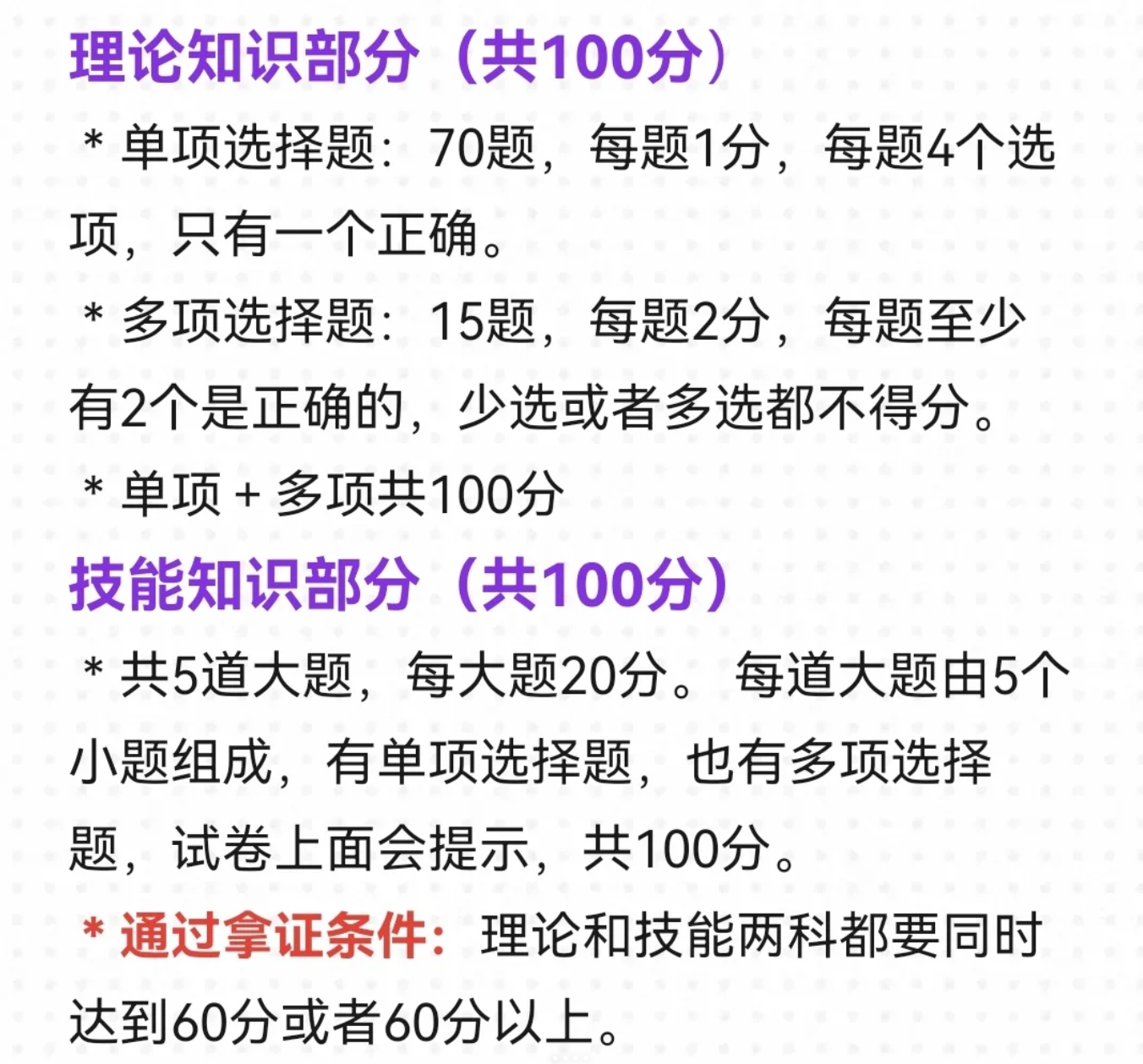 合格标准:100分满分,60分合格